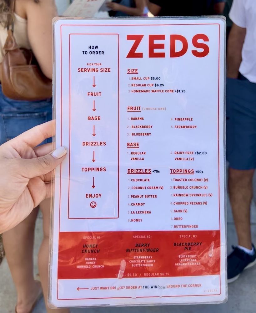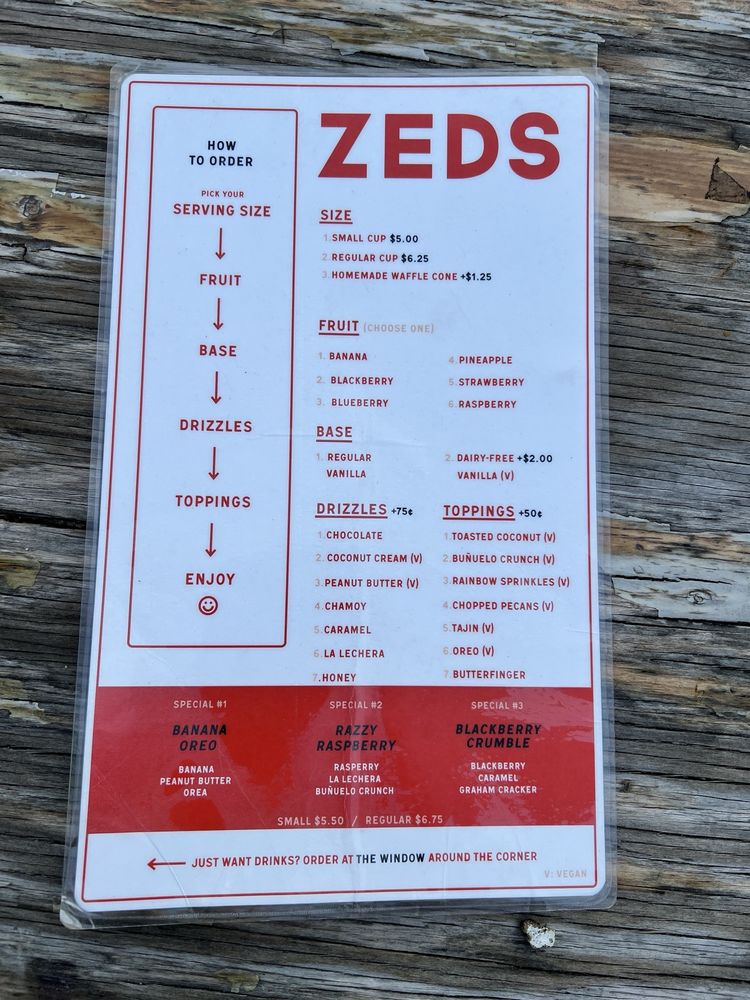 Customer reviews reflect a genuine love for Zeds' offerings. Whether it’s the subtly sweet banana paired with lechera or the vibrant blackberry with rich chocolate, each scoop is a celebration of flavor. While lines may form during peak hours, the speedy service ensures you won't be waiting long. With a cozy outdoor seating area, Zeds is perfect for enjoying your treat with friends. A visit here promises to be delightful, promising to satisfy your ice cream cravings!